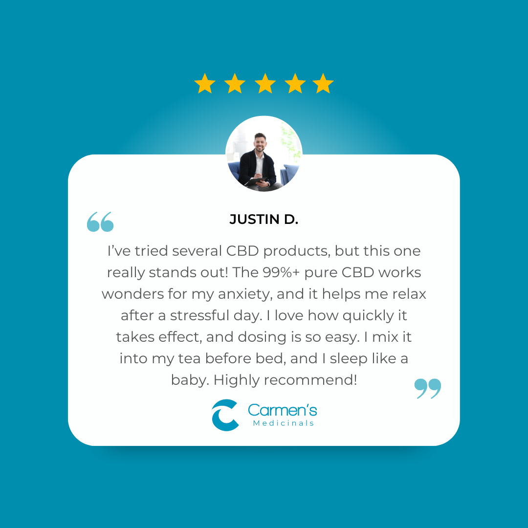This premium CBD isolate is formulated to support relaxation and enhance overall well-being. With its high-potency formula, it provides quick, effective results, helping you unwind and maintain balance throughout your day. Easy to incorporate into any routine, this isolate offers a convenient and reliable way to experience the benefits of CBD.